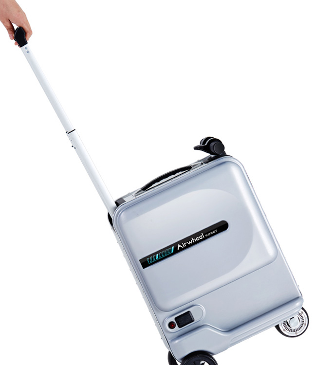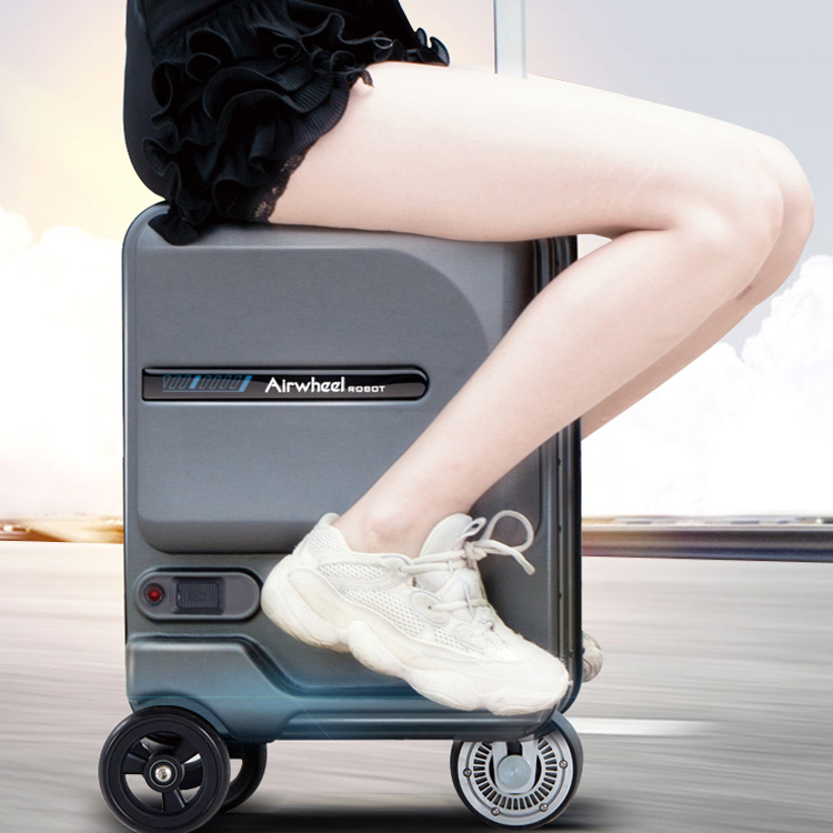 AirwheelSE3Mini smart electric luggage(suitcase) has an intelligent riding function. Pull out the hidden riding pole to ride.When taking a flight, the lithium battery adopts an external pluggable design, which can be removed to meet the security inspection regulations, and can be used as a power bank to charge portable electronic devices.